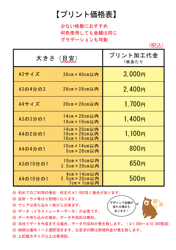 デザイン(図案)を持ち込まれる場合、版下代金が追加されます。