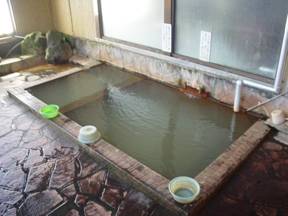 した。お湯は結構ぬるいので、長く浸かることが出来ます。湯船の縁は、鉄分で変色してい