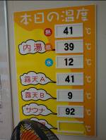 て浴室へ向かいます。浴室へ入るとすぐ、それぞれの浴槽毎の温度が1枚の掲示板でまとめ