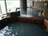 流し式(塩素消毒あり)となっています。お湯は鉄分の臭いと味、色は群青色?…う〜ん、