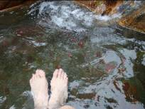 しばらく浸かっていると、お湯ではなく、短パンに水が染みてきて入浴を断念しました。