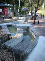 足湯の形は、2本の浴槽が並行しており、10人以上は同時に入浴できます。ま