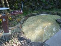 足湯そばには「足湯内に白い浮遊物、茶色い沈殿物が見られることがありますが、