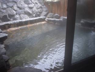 す。ちょっと寒いと感じたら、(内風呂と露天風呂を遮断している窓ガラスの)サッシを跨いで