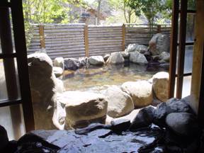 物の植込みが少なく、露天風呂にしては若干「窮屈」さを感じます。また、屋内と泉温よ