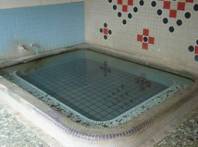浴槽の種類は内風呂ひとつ(約2×2.5m)、浴槽の底には吸水口があります。お湯は