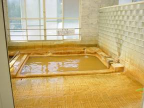 類は、内風呂と水風呂らしきものがひとつ。内風呂は黄土色で、湯船の縁も変色して