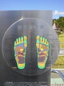 タイルには「胃」「肝臓」「尿道」など、「足つぼ」に対応した身体の部位がかかれていま