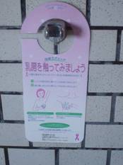 と、「洗い場」に『浴室でチェック 乳房を触ってみましょう』のプレートが。どうやら「乳ガン