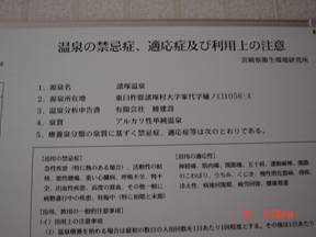 諸塚温泉の効能表