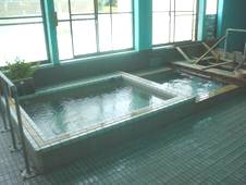 水風呂の「打たせ水」では、「修行」が出来るような水圧です。ただ、内風呂は「循環式」