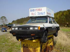 し、東側に「本物のパトカー」を使った交通安全の立体看板が見えてくると、西側に
