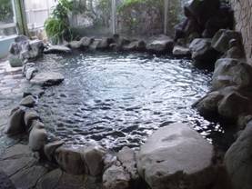 浴槽の種類は、岩風呂・内風呂2・打たせ湯2・ドライサウナ。岩風呂は約8畳でぬるめで