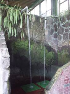 らいの水温の打たせ湯がちょうどよいのかもしれません。浴室内には、観葉植物が「前衛的