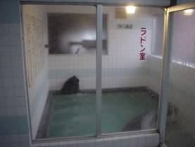 肝心のお風呂のほうですが、「ラドン風呂」ですのでガラスで仕切られており、「あのラ