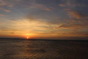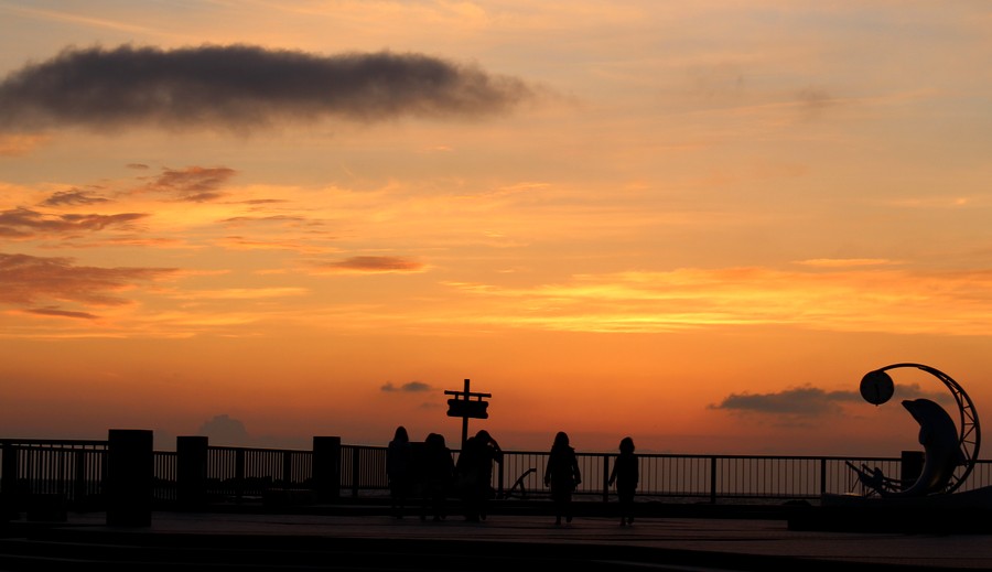 オホーツクの海から登った太陽が 遠く、日本海のかなたに沈もうと しています。 |