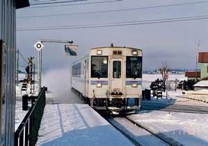 支笏湖 | 雪煙を立てて入ってくる電車 | |