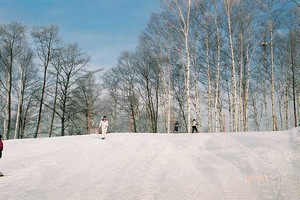 白樺とゲレンデ・・・・・・南国の人間に とっては夢のような世界がいま目の前に! |