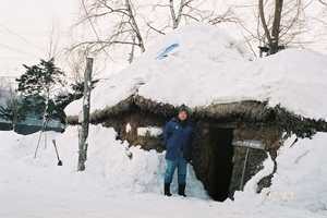 自分たちの子どものように可愛がって育てた子熊を、時が来れば神のもとに送る・・・・すなわち命を奪う儀式なのである。儀式の 様子をとらえた貴重な映像が記念館内で放映されていた。熊に矢を射た後、圧死させる場面、それを涙ながらに見守る アイヌ女性たち、おみやげを持たされて祭壇に供えられる熊の遺骸・・・・・どれもが衝撃的なものだった。もちろん動物愛護といった 観点からはとても理解できないが、アイヌ民族にとっては神との対話をする儀式なのである。 |