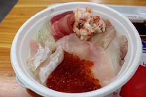 勝手丼のお店が、それぞれ色んなネタを並べています。どこの何を盛ってもらおうか・・・本当に迷ってしまいます。 |