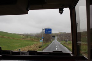 北海道はやっぱり広い!どこまでも続く 道路をバスはのんびりと走って行きます。 |