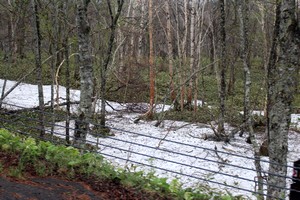 もう5月なのに、沿道のあちこちには まだ雪が残っています。 |