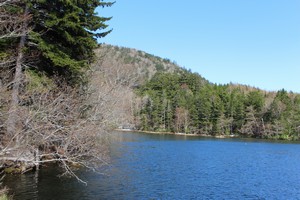 いよいよ、チュウルイ島に上陸です。船着き場の背後には、船上からずっと眺めてきた雄阿寒岳の勇姿が望めます。 毬藻の展示センターは森の奥まったところにあります。センターまでの小道を木漏れ日を浴びながら歩きます。 |