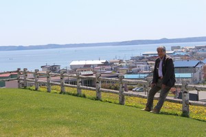 駅のそばにある今夜の宿(稚内サンホテル)に荷物を置き、すぐにノシャップ岬行のバスに乗りました。司馬遼太郎さんが 言っていますが、右のこぶしを突き出して、親指と小指を立てると稚内の地形になります。親指がノシャップ岬、その左側が日本海、 小指が宗谷岬、その右側がオホーツク海、両指の間が宗谷湾です。司馬さんによると、稚内はたった一つの市だけで、2つの岬と 3つの海を領する自然豊かなところなんだそうです。わずか15分でノシャップ岬です。 |