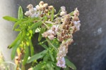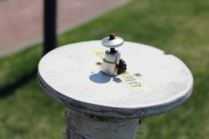 白樺の木の上にこんなものが備え つけられてました。何だろうと思い 近寄ってみると、記念撮影のセルフ 撮りの台でした。ちゃんとカメラに 直づけするためのねじも付いてました。 無粋な「自撮り棒」なんかより、 よっぽどいい工夫だと思います。 |