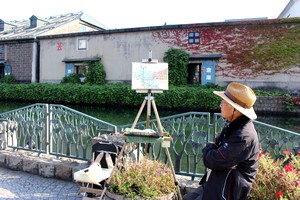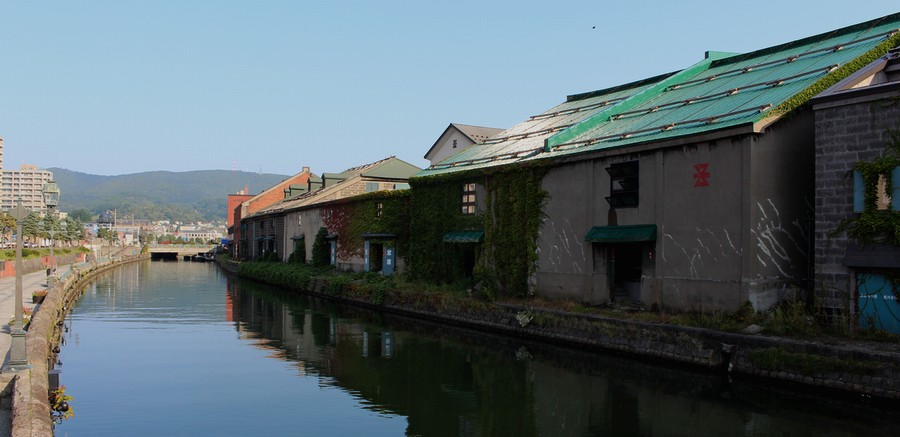 2日目の朝早く、運河に行ってみました。この小樽運河、愛知県の半田運河そしてわが宮崎県は日南市の堀川運河 だそうです。堀川は昔から馴染みがありますし、半田運河には数年前行ってきたので、“これで3大運河ゲッツ!”と くだらぬことを心の中でつぶやきながら、波一つない水面を眺めてました。がっしりした石造りの散策路と、 対岸のレトロな倉庫群が長い歴史を感じさせます。 |