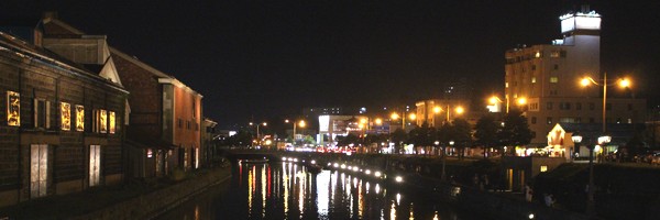 夕方、小樽に引き返し、再び小樽運河に・・・今度は約40分のナイトクルーズです。 ライトアップされた河畔の工場や倉庫群は、昼間とは全く違った世界を見せて くれました。 |