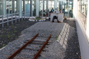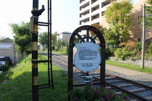 旧手宮線跡地。明治13年開通で、廃線 後もレールが残されレトロな散歩道に なっています。 |