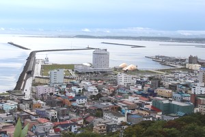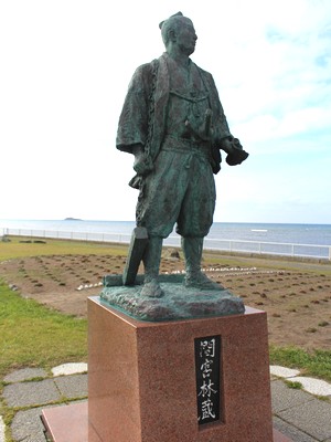 稚内公園から市街を見下ろす。 | 江戸時代に樺太を探検した間宮林蔵の像 今も北方の海を、じっと眺めています。 |