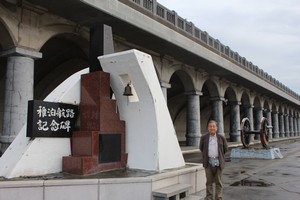 かつて樺太と稚内を船で結んでいた 雅泊航路の記念碑と、高波を防ぐ 巨大な防波堤ドーム |