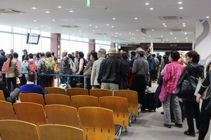 土曜だったためかフェリーは ほぼ満員に近い乗船率でした。 |