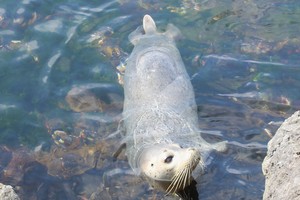 島の南の海岸沿いにつくられた仙法志御崎公園には、アザラシが泳いでました。 漁師小屋で食べたアワビがまた格別で・・・ |