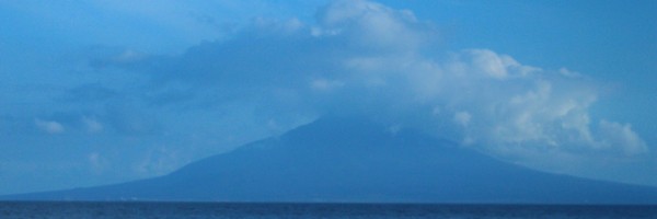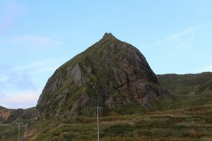 礼文島から稚内に帰るフェリー上で、さっき周回した利尻島の利尻富士を眺める ことがてぎました。本当に富士のようにきれいな形です。 |