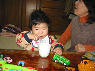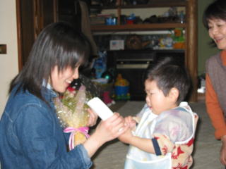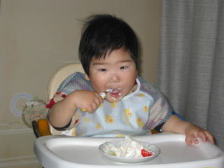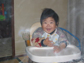 | みんなでハッピーバースデーを歌っている時です。こうちゃんはとっても嬉しそうでした。 | |