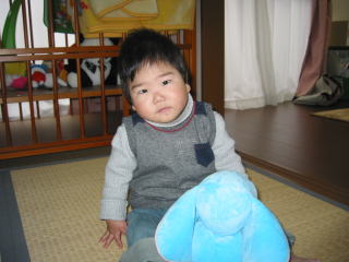 | 最近こうちゃんは「ダンボ」のぬいぐるみが大好きです。テレビを見るときも、ダンボに「見よう、おいで」と言って自分のところに持ってきていました。あとは、自分のおもちゃをダンボに貸してあげたり、友達と思ってるのかな? |