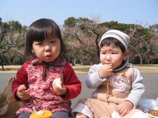 | りおちゃんとりおちゃんママと4人で市民の森に梅の花を見に行きました。 | |