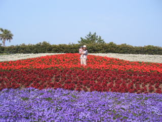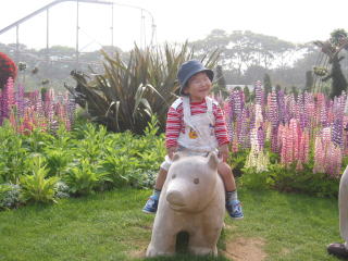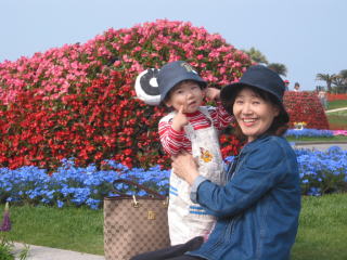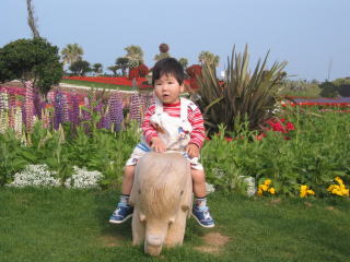 | 「こどものくに」のフラワーフェスタに行きました。後ろのはお花でできた鯨です。 | |