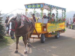 | 花馬車に乗りました。馬がちょっと疲れててかわいそうだった・・・ | |