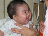 この頃舌をよく出していました。ちなみに、この写真は吸引をされるところなんだけど・・・ |