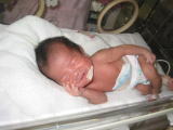 | 保育器の中のこうちゃんです。どんな夢を見ていたんだろうね。 | ![]() |
