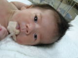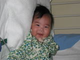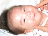 | 生後3ヶ月のこうちゃんです。この頃から本当によく笑う子でした。体重が増えだしたのもこの頃です。 | ![]() |