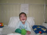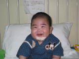 平成14年12月20日に家の近くの病院に転院しました。これから毎日こうちゃんに会えるようになりました。 お口の管は吸引です。根治術までずっとしていました。 |