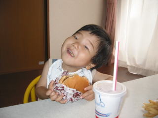 | ハンバーガーは半分くらい。ポテトも食べたよ。 | |