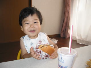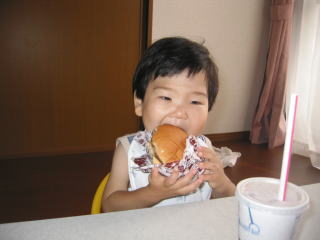 | ハンバーガーもこの通り!量はあまりとれないけど、何でも食べれるようになったよ! | |