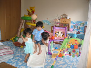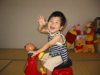 | りおちゃんとゆうくんとそらちゃんが遊びに来てくれました。これはこうちゃんとりおちゃんです。ちゃんと交代で乗りました。二人ともおりこうさんだね! | |