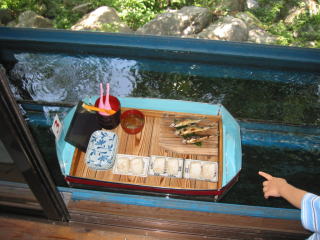 | 本当に船が料理を運んできたね。うれしいな! | |